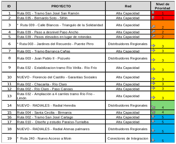 *El resto de la Ruta Nacional 39 (Circunvalación Norte: tramo La Uruca-Ruta Nacional 32) ya se ha comprendido en otro programa que, supuestamente, ya encamina su contratación. Igual sucede con Jardines de Recuerdo-Pirro, donde el tramo Juan Pablo II – Pozuelo – Jardines del Recuerdo supuestamente están contemplado en otro programa. El documento completo está disponible aquí